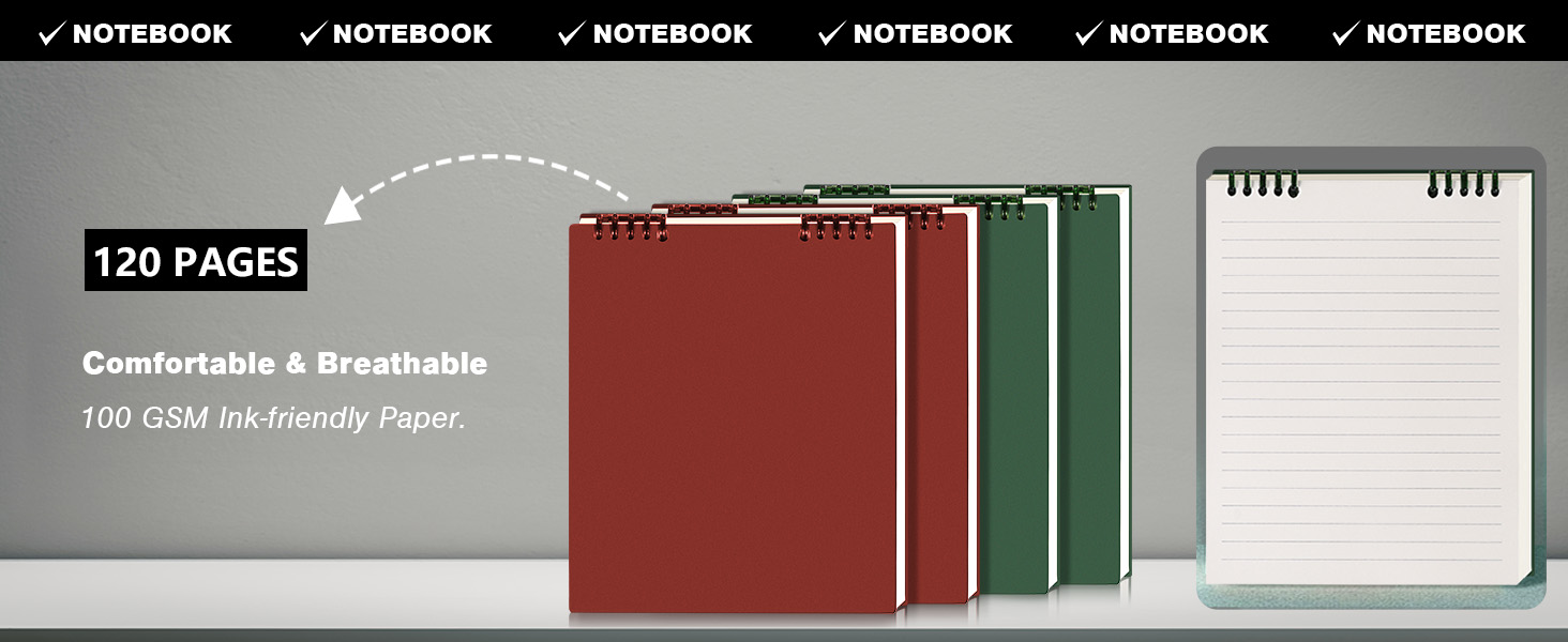 • سعة عملية: يحتوي كل دفتر على 120 صفحة (60 ورقة) من الورق عالي الجودة لتدوين الملاحظات على نطاق واسع