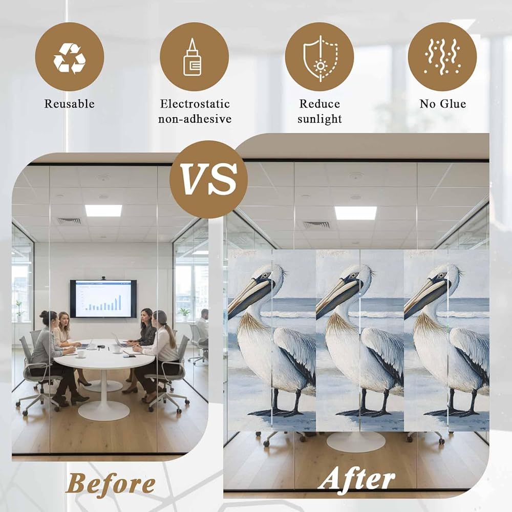 • Non Adhesive Window Frost Film: Our frosted glass window films are crafted from PVC material, ensures superior privacy, insulation and durability. The insulated window coverings blocking sun glares and UV rays, and also provide reliable protection for your windows