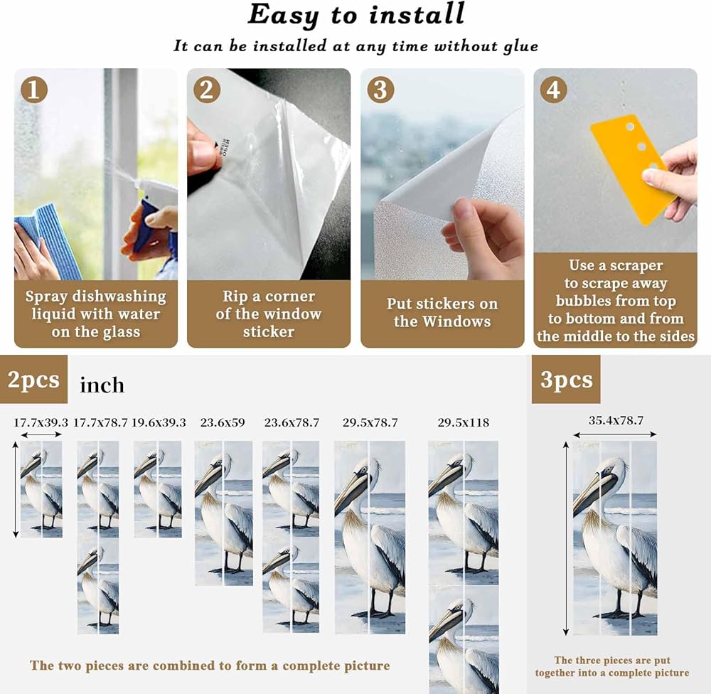 • Widely Use: Decorative frosting window coverings consists of two pieces, 29.5 x 78.7 Inches total. The two pieces are combined to form a complete picture, removable and reusable glass window cling is suitable for smooth and clean glass surfaces in living rooms, kitchen, balconies, offices, hotels, etc