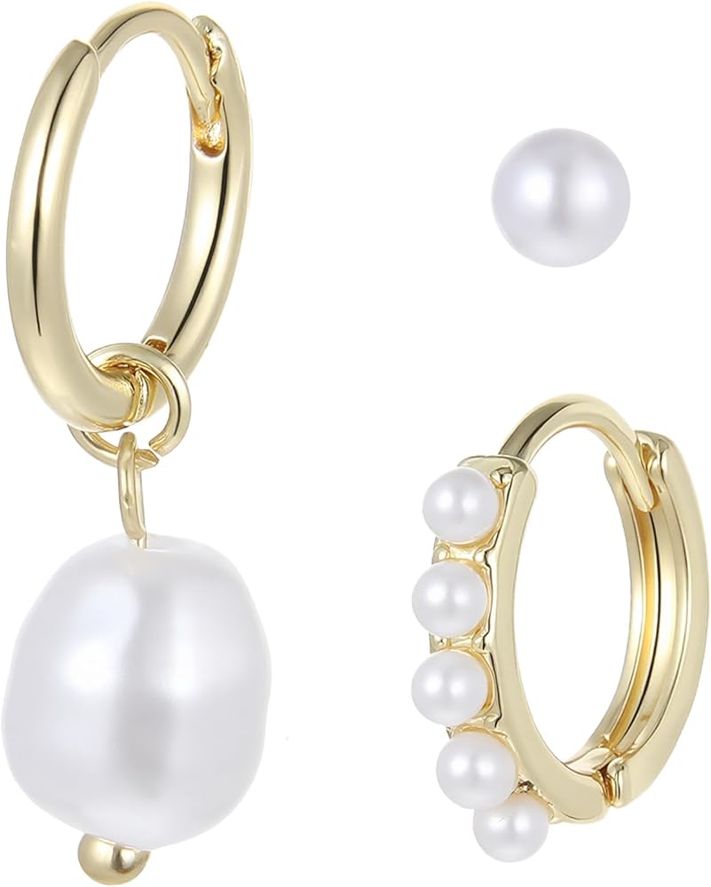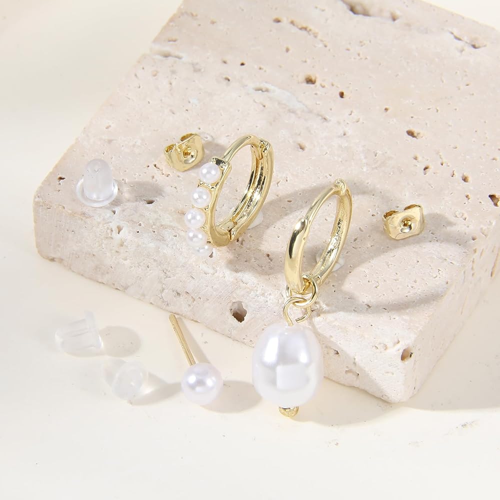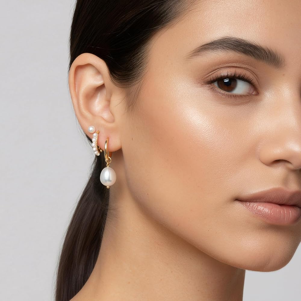 Discover the elegance of our gold pearl earrings set, featuring a pearl stud and pearl hoop earrings, perfect for any occasion.