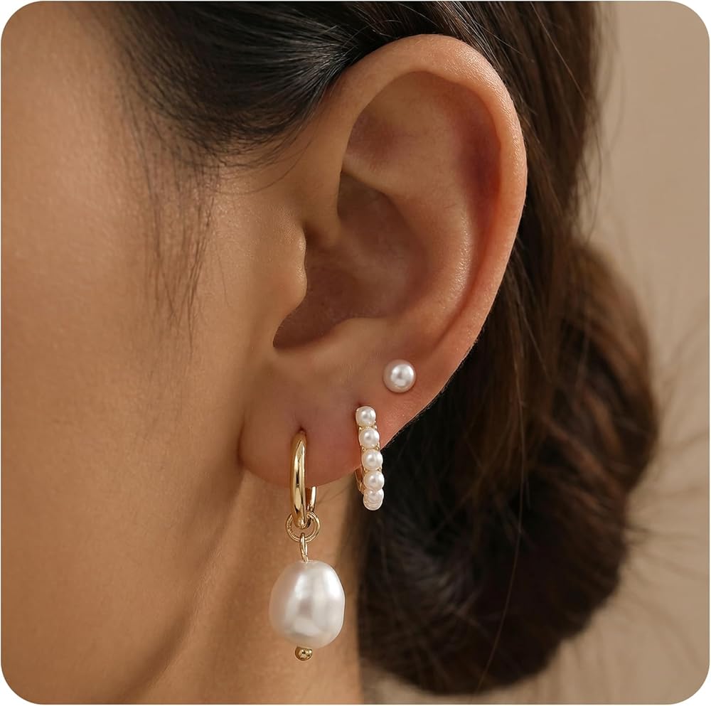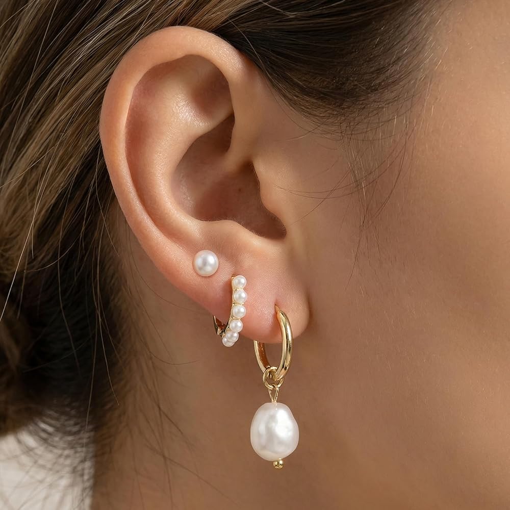 Product list: 3Pcs Gold Pearl Earrings