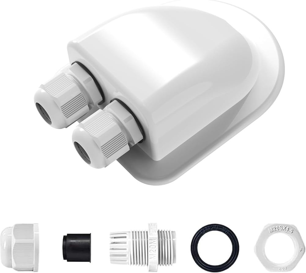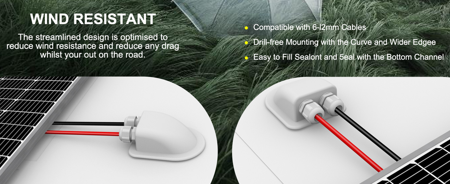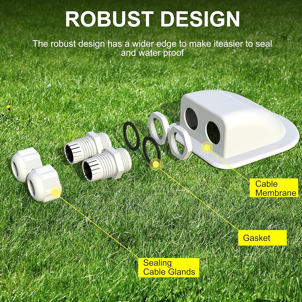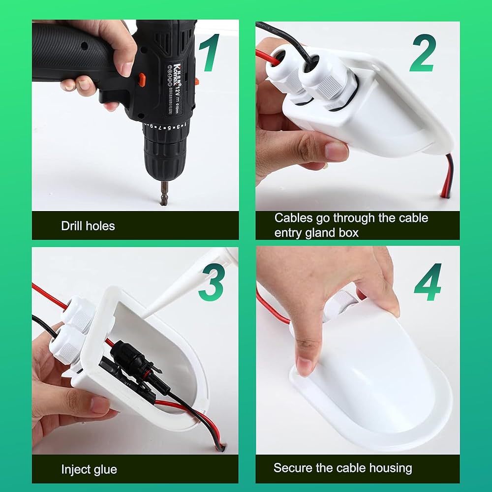 ACOPOWER وصلة دخول كابل مزدوج مقاوم للطقس بالطاقة الشمسية، كابل من خلال سقف RV، صندوق وصلات الطاقة الشمسية ABS، مبيت دخول لكابلات الطاقة الشمسية 14AWG إلى 10AWG لمشروع الطاقة الشمسية على RV، القوارب، القوافل، Campervan