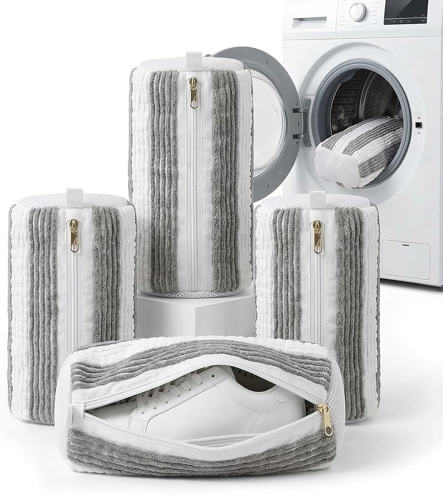 【Laundry Shoe Bag Set】You will receive 4 shoe bag for washing machine. You only need to load the shoes into the shoe laundry bag,pour in the detergent, zip it up, throw it into the washing machine, a moment to get a pair of clean shoes.