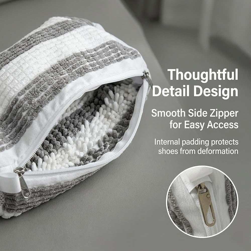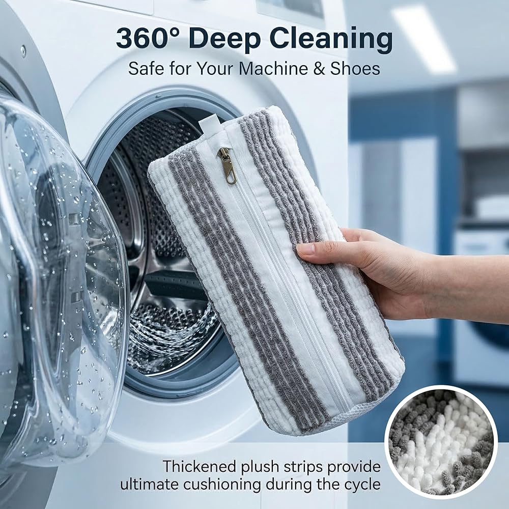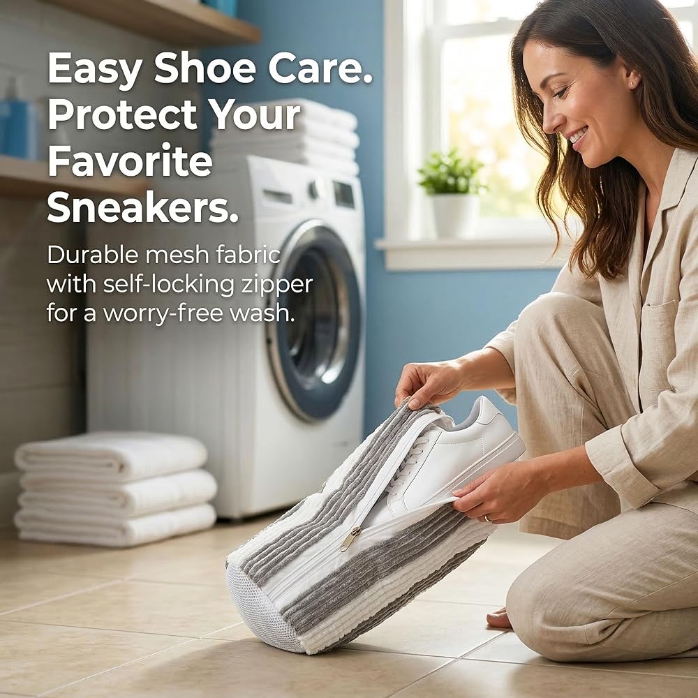 【Lock Zipper Design】Our shoe cleaning bag features upgraded zipper design that can provide double protection. The metal lock zipper ensures that your shoes stay securely inside the bag during the wash cycle, it won't loosen or open during washing.The zipper can be tucked into the elastic band to prevent it from getting caught or scratching machine walls or other items.