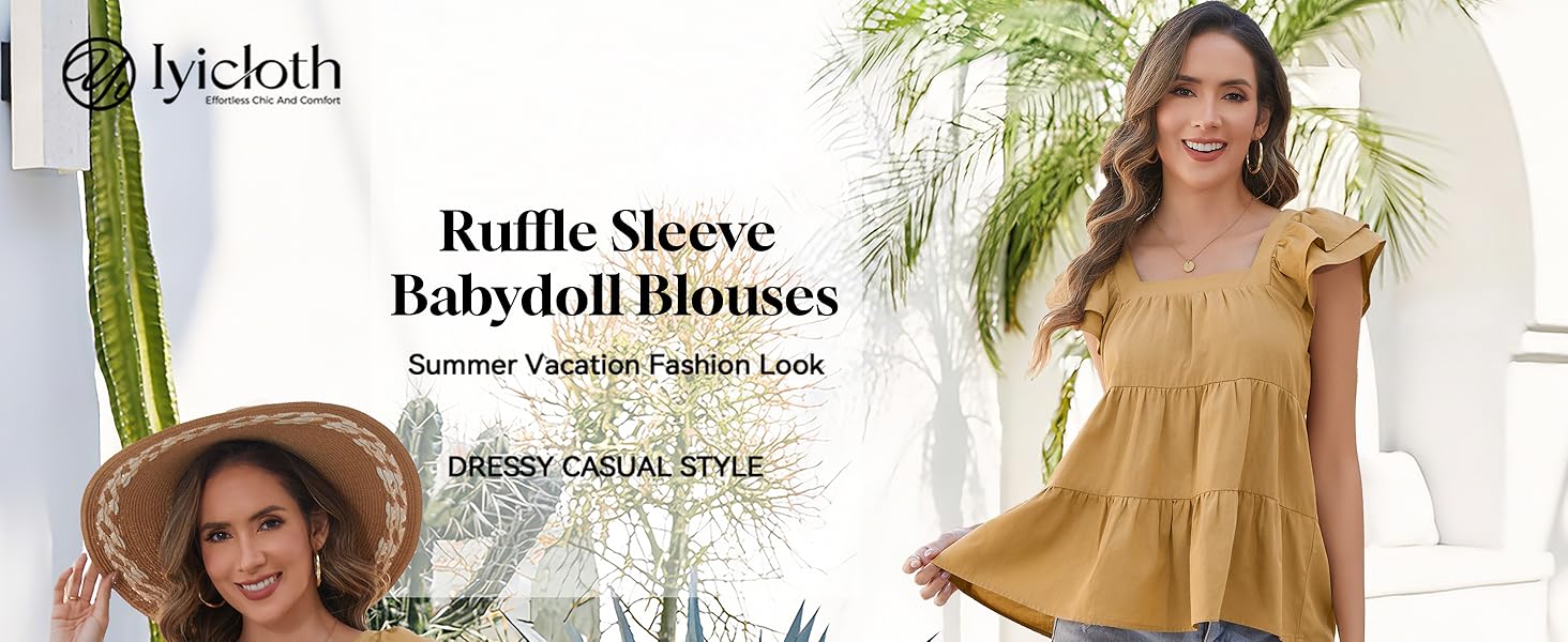 [المميزات]: تتميز قمصان بيبي دول بأكمام مكشكشة، ورقبة مربعة، وحاشية مكشكشة فضفاضة، والتي تبدو وكأنها أنيقة وجميلة.