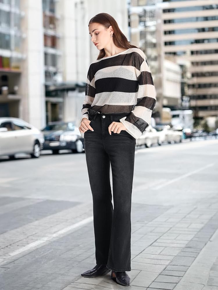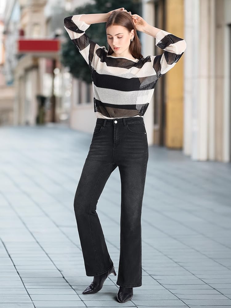 • [المناسبات]: هذا الجينز النسائي المتوهج مثالي لكل من المظهر الكاجوال والملابس الرسمية. ارتديها مع بلوزة وحذاء بكعب مدسوس لمظهر مكتبي أنيق، أو ارتديها مع تيشيرت بسيط وحذاء حتى الكاحل لنزهات نهاية الأسبوع. يعمل التصميم المتوهج متعدد الاستخدامات على إطالة الساقين، مما يجعلها مثالية للعمل أو العمل أو السهرات أو الصالات المنزلية أو الحفلات أو التسوق أو وجبات الغداء غير الرسمية.