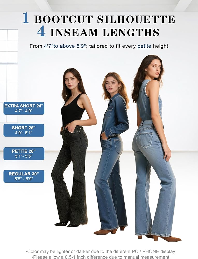 • [خاص بـ PETITE]: يأتي الجينز المطاطي للسيدات في 4 خيارات للدرزة الداخلية: شورت إضافي 24 بوصة لـ 4'7"-4'9"، قصير 26" لـ 4'9"-5'1"، صغير 28" لـ 5'1"-5'5"، وعادي 30" لـ 5'5"-5'9". اختر درزة داخلية أقصر بمقدار 1-2 بوصة من المعتاد في الجينز الكابري أو الجينز القصير. بالإضافة إلى ذلك، اختاري بنطال جينز أطول من المعتاد للحصول على مظهر طويل