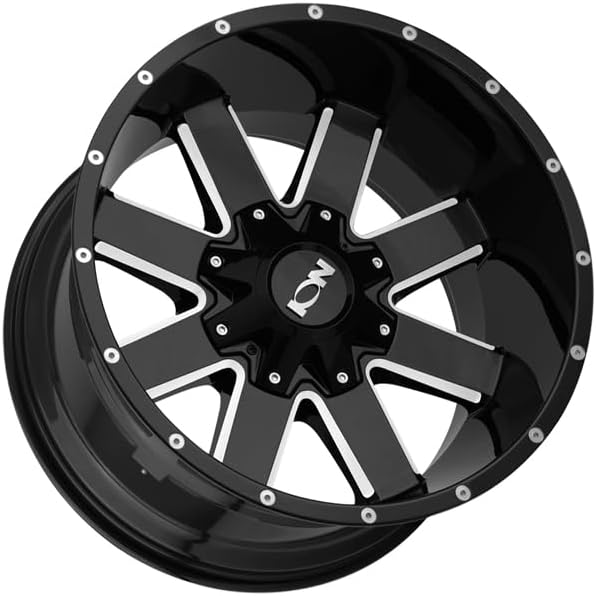 العجلات الأيونية 141 عجلة مطحونة باللون الأسود اللامع مع سبائك فولاذية (20 × 10 بوصة /6 × 106 ملم، إزاحة -19 ملم)