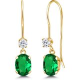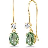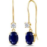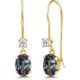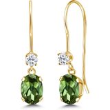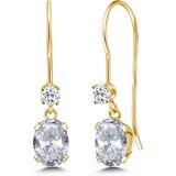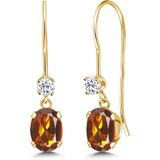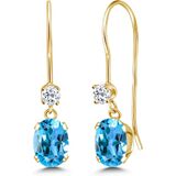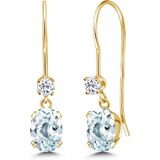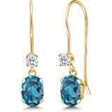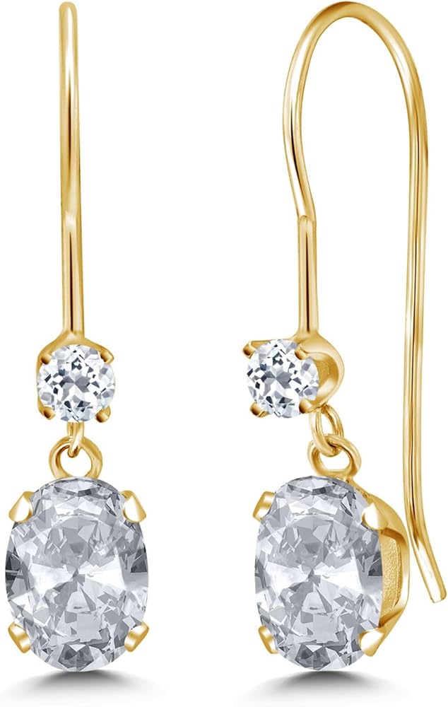 أقراط متدلية بسلك فرنسي من جيم ستون كينج للنساء | ذهب أصفر عيار 14 قيراط | جوهرة الميلاد من الأحجار الكريمة والتوباز الأبيض | بيضاوية 6 × 4 مم ودائرية 2.5 مم | هدايا مجوهرات للنساء in Kuwait