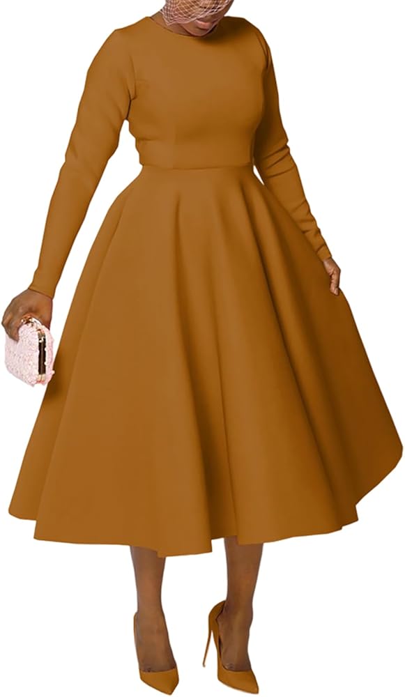 فستان نسائي رسمي طويل الأكمام رائع للارتداء مع الكعب العالي والأوشحة والمعطف والسترات السفلية والمعطف الصوفي والسترة الصوفية والأقراط والخاتم للحصول على مظهر أنثوي وأنيق. مناسبة لجميع المواسم.