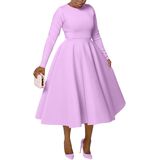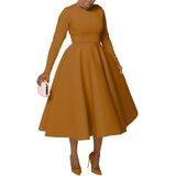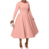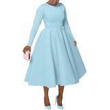 التصميم: لون موحد، كم طويل، رقبة دائرية، خصر عالي، سحاب خلفي، طول ماكسي، فستان فضفاض فضفاض، فستان طويل الأكمام، فساتين الكنيسة للنساء 2025، فستان طويل لحفلات الكوكتيل العتيق، فستان طويل رسمي على شكل حرف A، فساتين ماكسي رسمية، فساتين نسائية لضيوف الزفاف.
