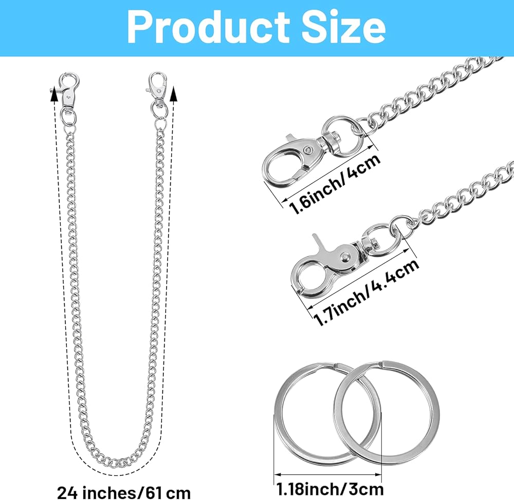 • Adjustable Length: This 24-inch pants chain is versatile. You can thread it from a belt loop into your jeans pocket for a classic look or attach it to your trousers and bag for a more personalized style. The wallet chains for men adjustable lobster clasp ensures a secure fit suitable for any outfit or occasion.