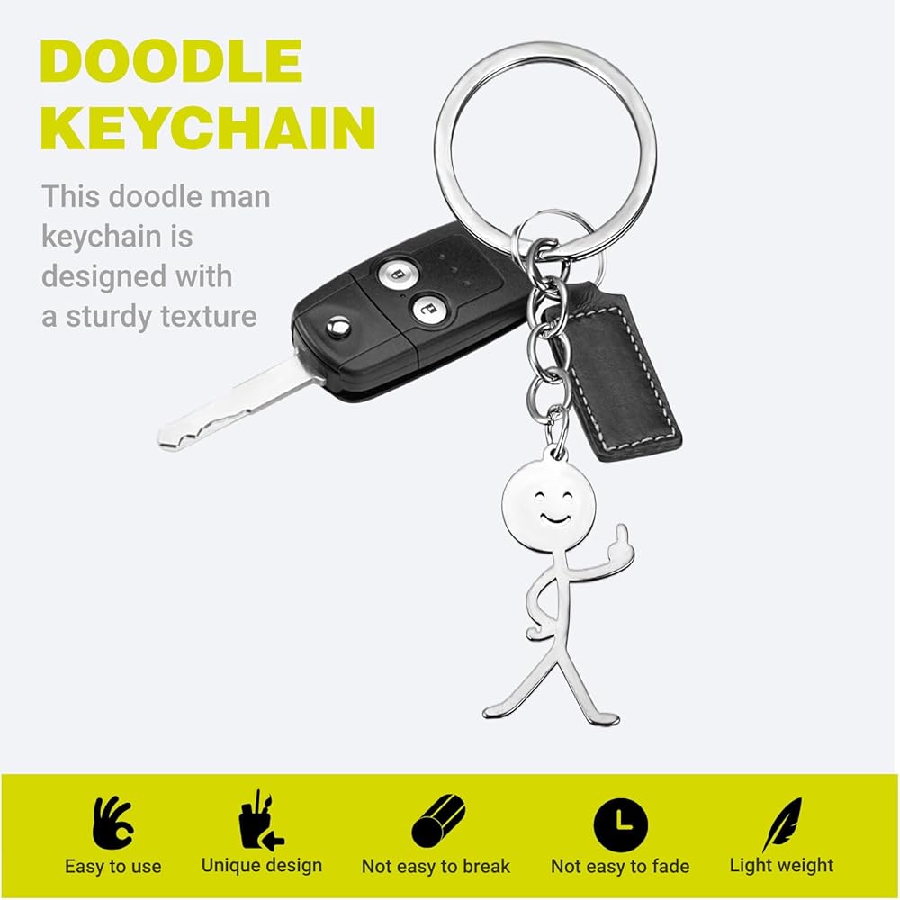 Interesting Appearance: This is a funny keychain, the funny stickman raising the middle finger can add fun to your life and show people your mood and emotions