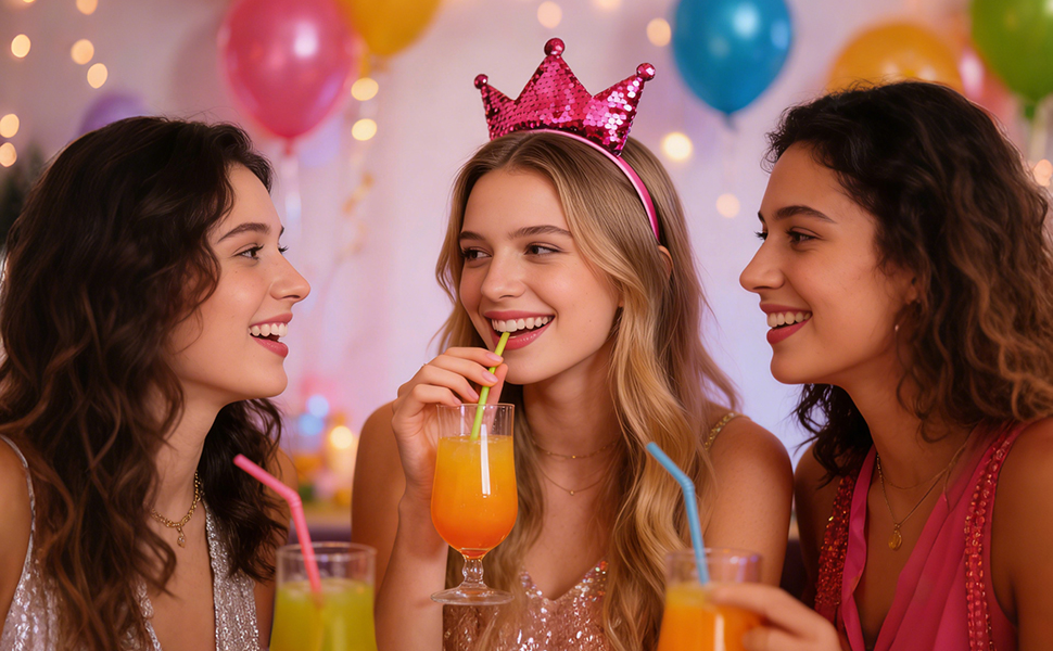 ملاءمة مريحة وآمنة: تتميز عصابة الرأس هذه بتاج من الترتر اللامع، وقد تم تصميمها بهيكل خفيف الوزن لسهولة الارتداء؛ يساعد الشريط ذو الشكل على ضمان بقائه في مكانه بشكل آمن؛ بينما تم تصميم الأطراف الناعمة لتجلس بلطف خلف الأذنين، مما يجعلها إكسسوارًا ممتعًا للحفلات