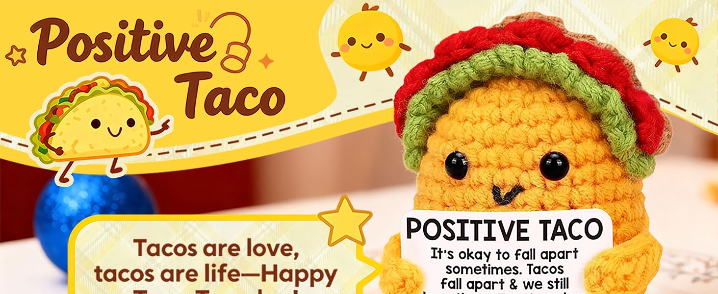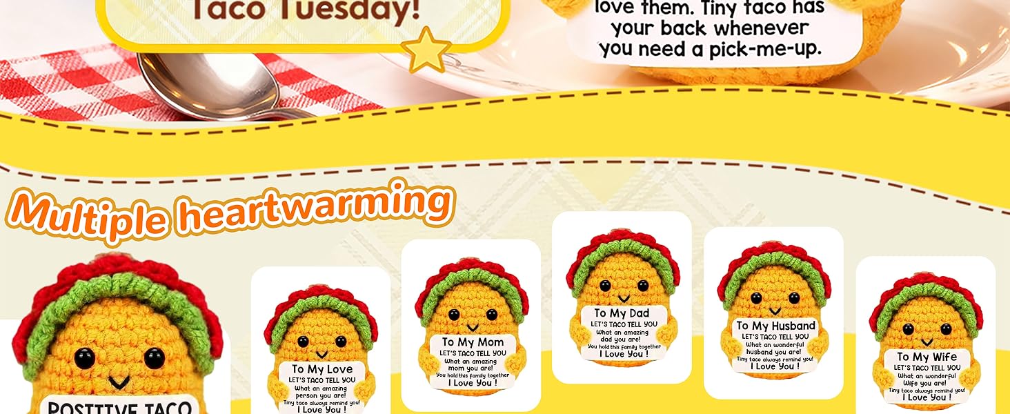 هدايا عيد ميلاد للنساء والرجال: هذا التاكو الإيجابي للدعم العاطفي من الكروشيه هو أكثر من مجرد دمية كروشيه؛ إنه تفكير صادق لك هدية وهدية تقدير. مثالية كهدية في عيد الحب للأم والأب والابنة، فهي تحمل رسائل مثل "Pick-me-up" للتعبير عن الامتنان والحب.