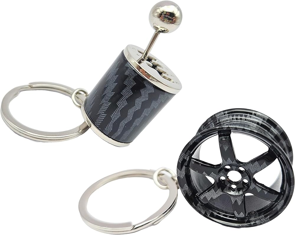 Elevate your style and showcase your passion for automotive excellence with our Carbon Fiber Gear Shift Keychain and Wheel Keychain Combo. Crafted with meticulous attention to detail, these keychains are perfect for car enthusiasts who appreciate quality and aesthetics. Whether you're adding a touch of personality to your keys or looking for a unique gift, this combo is sure to impress.