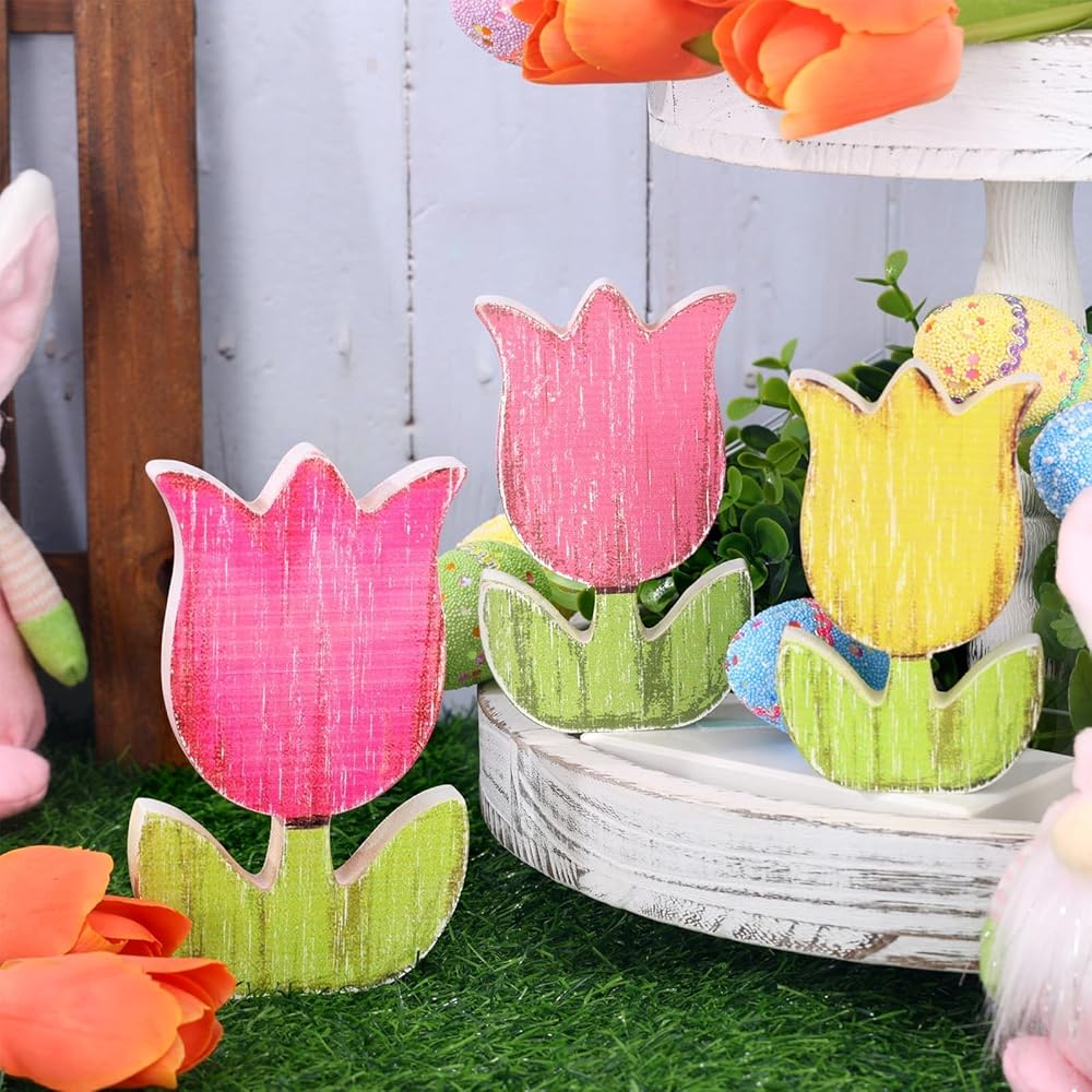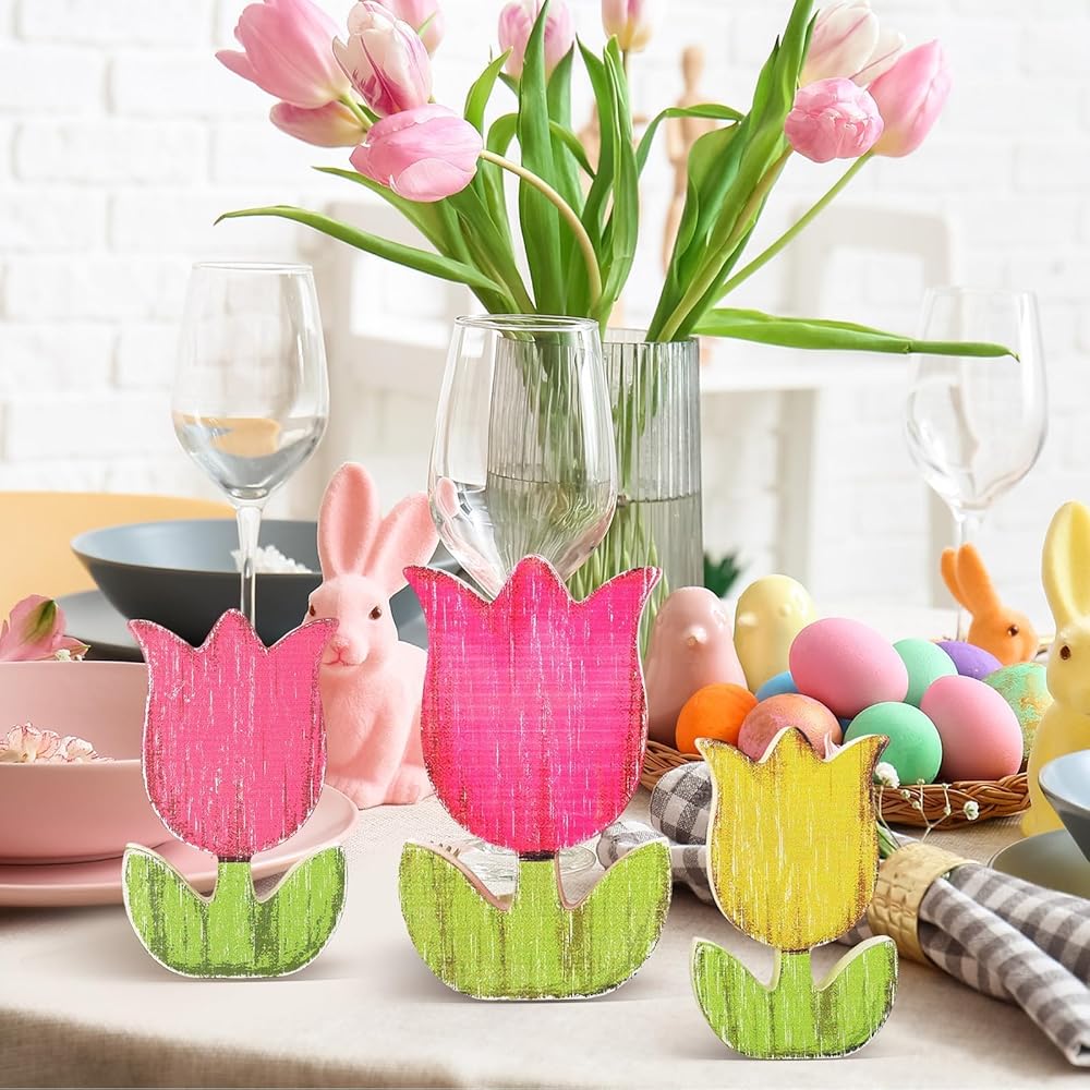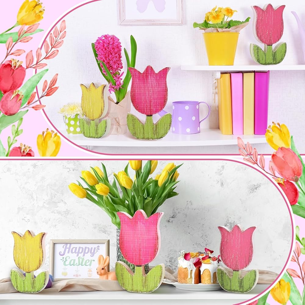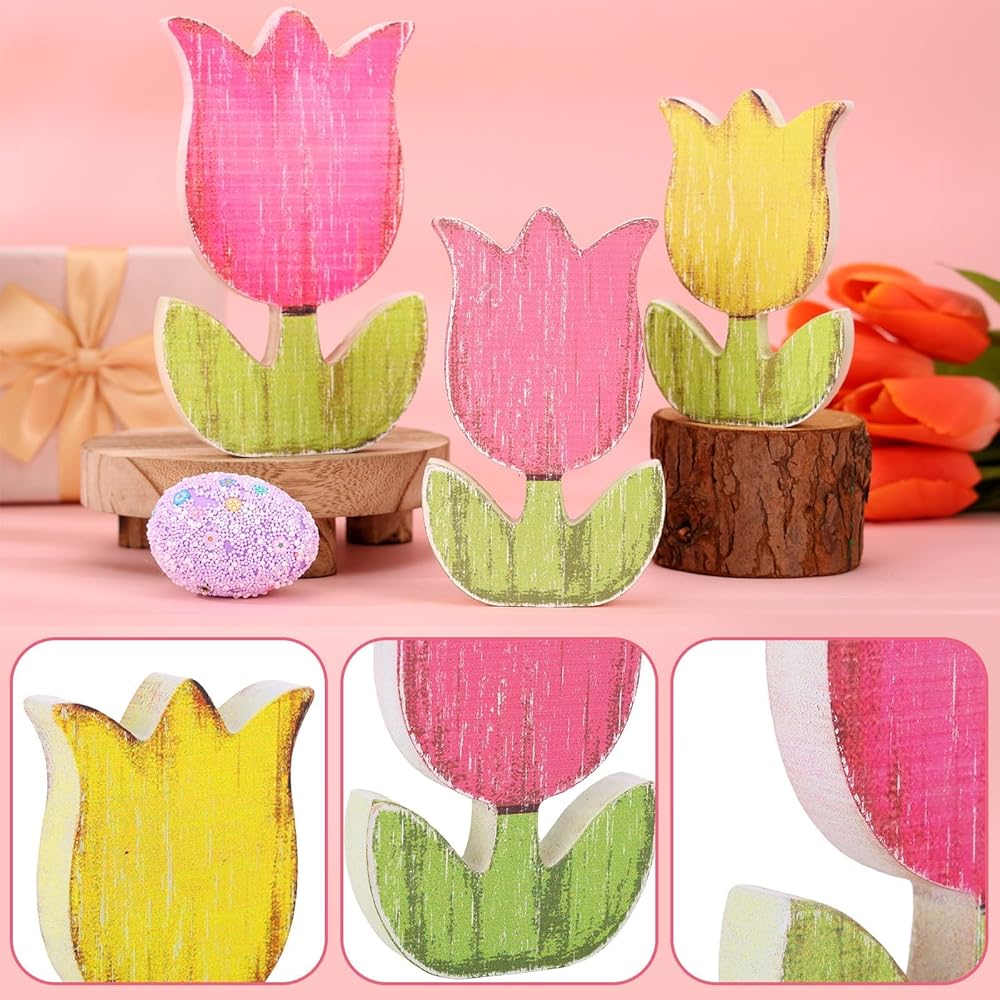 Our tulip table decorations featuring faded paint to best reveal the wood grains, vivid and attractive, create a rustic or modern style decoration, attract everyone's attention.