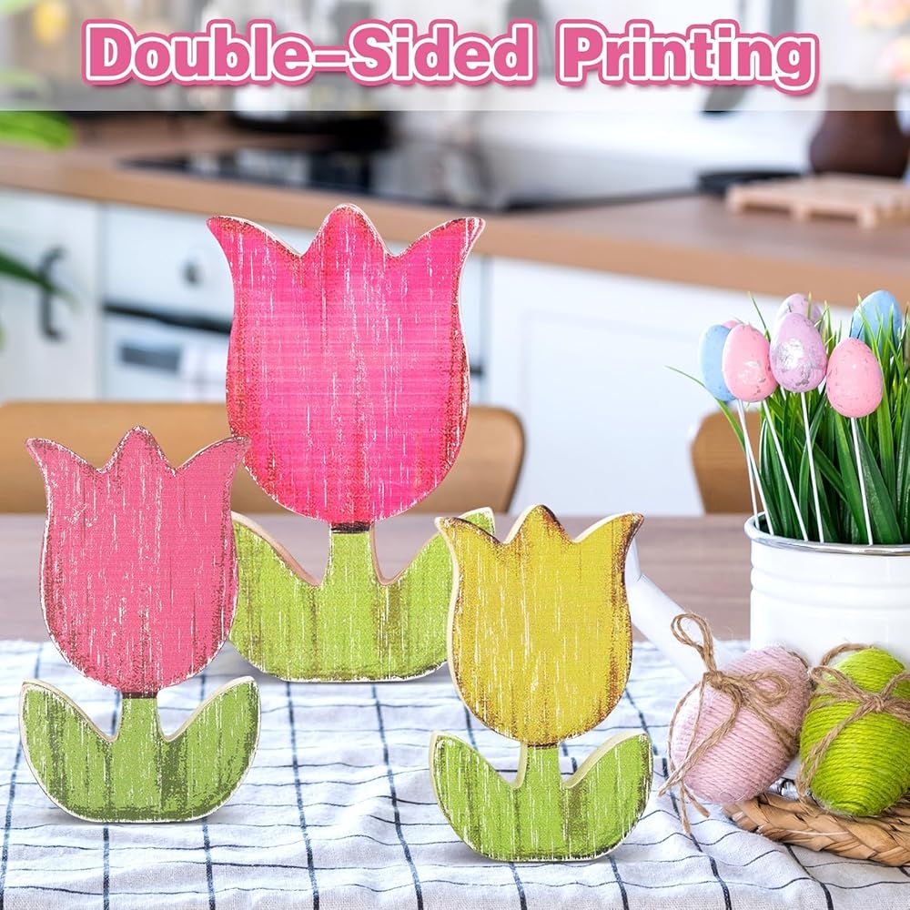 Our spring tabletop centerpieces are made of pine wood, smooth and no burrs, waterproof and durable, not easy to break or fade, can be used and kept for a long time.