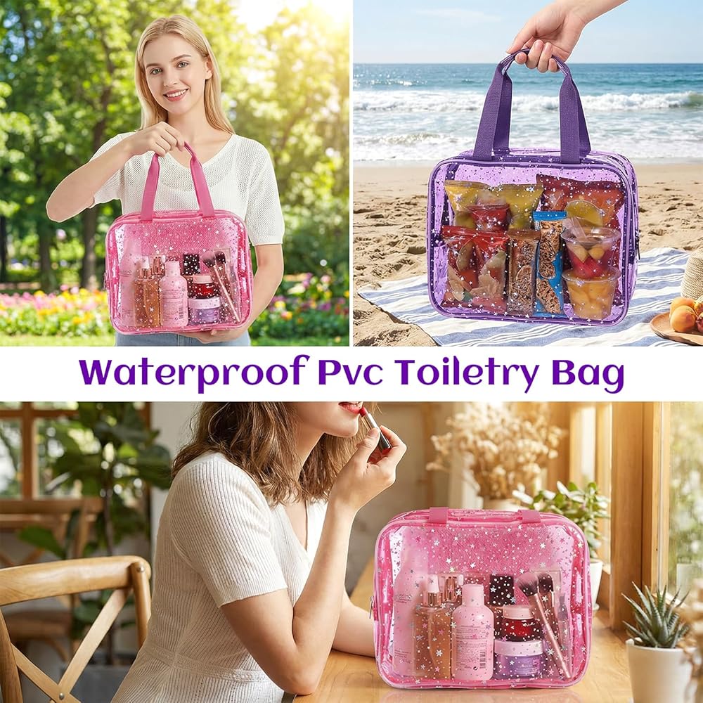 Versatile Uses: This clear toiletry bag serves multiple purposes. Use the plastic makeup bags as a makeup organizer, toiletry pouch, everyday bag, beach tote, gift bag, or swim bag. Whether traveling or organizing daily essentials, this versatile bag meets all your needs