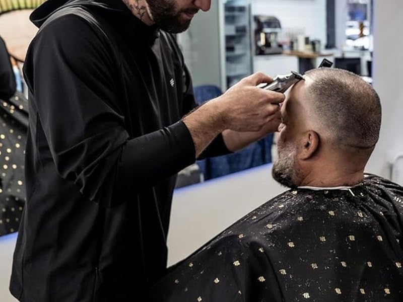 أنيق وعملي: سترة الحلاق ذات القلنسوة أنيقة بقدر ما هي عملية. نحن نعلم أنه نظرًا لأن مظهر الحلاق الجيد هو جزء من الصفقة مع سترة الحلاق ذات القلنسوة، فإنك لا تضحي بالأناقة من أجل الراحة والحماية. يتناسب التصميم الأسود الأنيق بشكل جيد مع جمالية صالون الحلاقة مع عدم وجود شعر ملحوظ ملتصق بالقماش. جيوب عملية غير مرئية بسحاب تمتزج بشكل جيد مع القماش بينما تسمح لك بتتبع ضرورياتك.