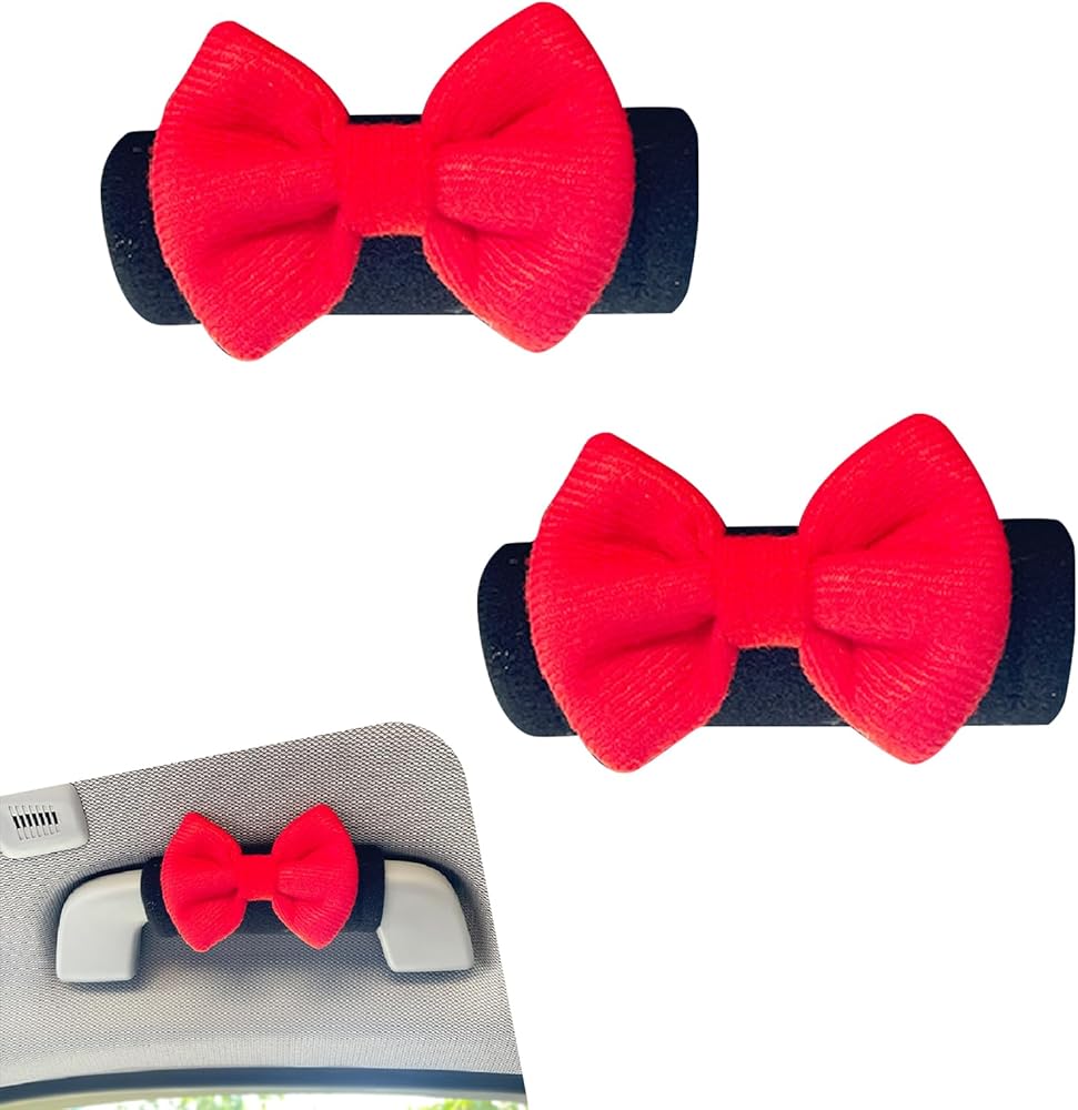 Hugwits 2 PCS Car Inside Roof Handle Covers, Cute Bow Anti-Slip Vehicle Interior Door Pull Handle Protector, Anti-Scratch Front Rear Door Handle Sleeve, Universal for Car SUV Truck (Pink)