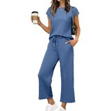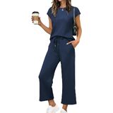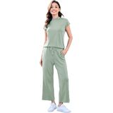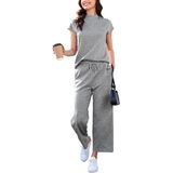 طقم صالة نسائي من قطعتين من Totatuit ملابس صيفية للسفر في المطار بدلة رياضية واسعة الساق in Kuwait
