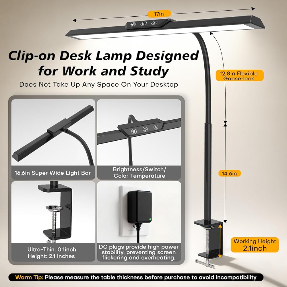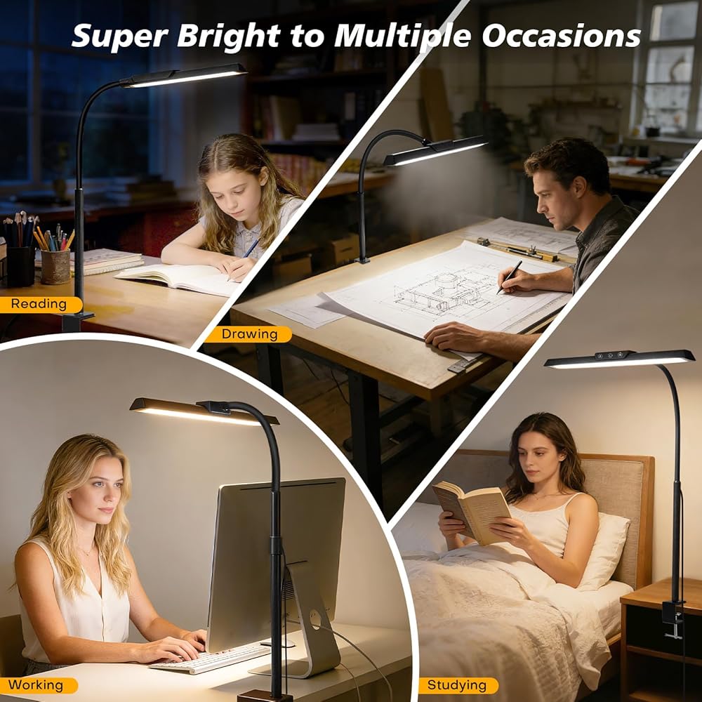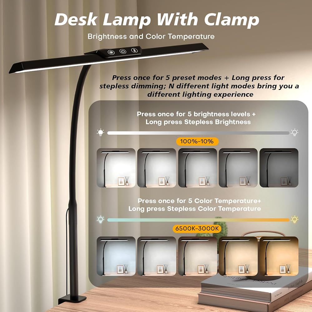 مصباح مكتب LED للمنزل المكتبي، ضوء مكتب معماري معتم بدون خطوات مع محول تيار مستمر، مصباح مكتب للعناية بالعين مع مشبك، 25 وضع إضاءة قابل للتعديل 12.8 بوصة معقوفة مرنة لمنضدة العمل، الصياغة