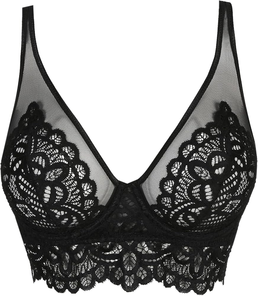 The Prima Donna First Night Triangle Bra 014-1886 with underwire cups and comfortable mesh lining with an apex neck and a double adjustable straps design that converts into a crisscross with sheer lace from front to back. Prima Donna First Night Triangle Bra is made of polyamide/elastane/polyester.