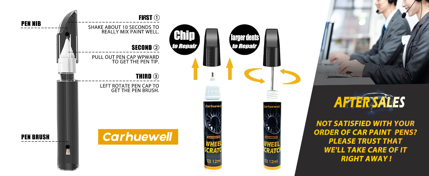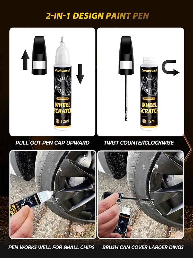 إصلاح الخدوش بدون جهد: مزيل الخدوش على حافة السيارة سهل الاستخدام. فقط قم بتنظيف السطح التالف من أجل تطبيق سلس. قم بهز إصلاح خدوش طلاء السيارة الأسود لمدة 20 ثانية تقريبًا لضمان خلط الطلاء جيدًا. يعتبر سن القلم مثاليًا للرقائق الصغيرة، بينما تتعامل الفرشاة مع الخدوش الكبيرة بسهولة. يجف الطلاء المخصص لإصلاح خدوش العجلات بسرعة، عادة خلال 10 دقائق، مما يسمح لك بالعودة إلى الطريق دون أي تأخير