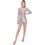 Features: Sexy bodycon slim fit bodysuit, long sleeve, high collar, cupless, shiny glossy, semi see through sheer, back with zipper closure starts from the neck to the waist.