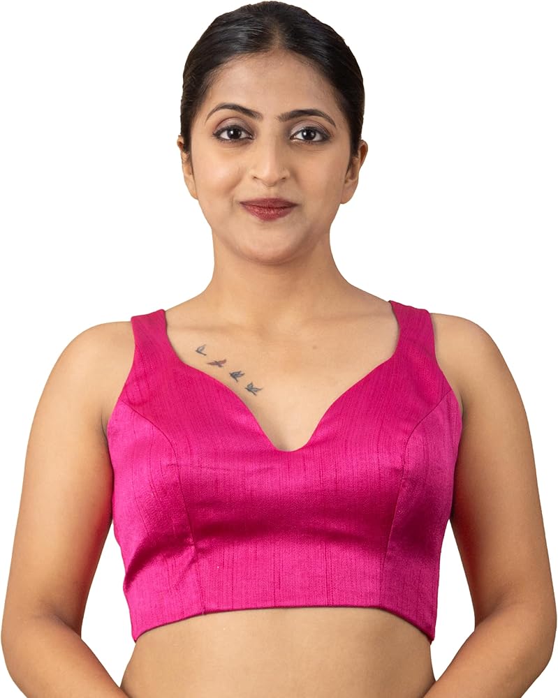Introducing our Women's White Dupion Silk Sleeveless Blouse with a Sweetheart Neckline, a stunning choice for your saree collection. Crafted from high-quality Dupion silk fabric, this blouse features a romantic sweetheart neckline for an enchanting look. It is sleeveless, providing comfort and ease of movement, and comes with padded cups for a flattering fit. The luxurious Butter Crepe lining ensures all-day comfort. Highlights: Premium Dupion Silk Fabric Romantic Sweetheart Neckline Sleeveless for Comfort and Style Padded Chest for Flattering Fit Premium Butter Crepe Lining Elegant Solid White Color Benefits: Elevate your saree ensemble with this romantic blouse Sweetheart neckline adds an enchanting touch Sleeveless design offers a clean and chic look Padded cups ensure a perfect fit Butter Crepe lining ensures luxurious comfort Ideal for weddings, parties, and special occasions Boost your confidence with this elegant choice Usage: This White Dupion Silk Sleeveless Blouse with a Sweetheart Neckline pairs effortlessly with your sarees, making it suitable for various occasions, from romantic evenings to formal events. The romantic design and comfortable fit make it a must-have addition to your ethnic wardrobe. Quality Assurance: At FIGURE'S, we prioritize customer satisfaction. Our commitment to quality is reflected in every aspect of our product. The White Dupion Silk Sleeveless Blouse with a Sweetheart Neckline is carefully crafted using premium materials and meticulous workmanship. Rest assured that you will receive a product that meets the highest standards of quality and durability. Join our FIGURE'S family and experience our dedication to inclusivity, affordability, and body positivity. We strive to create a community of empowered women who feel confident and beautiful in their skin. Choose our White Dupion Silk Sleeveless Blouse with Padded Chest and Premium Butter Crepe Lining for embracing your individuality and making a fashion statement on any occ