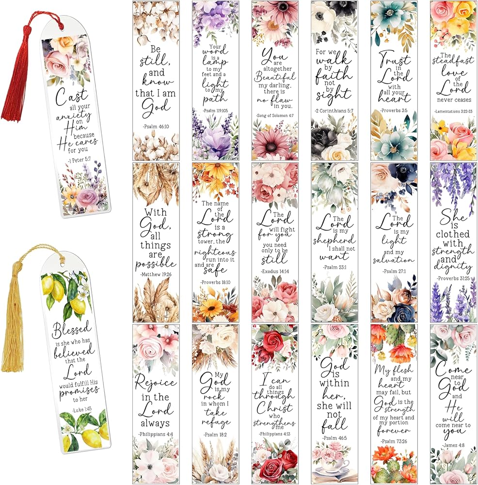 【UV DTF Stickers for Bookmarks】:You will get a set of Bible&Flower-themed stickers for bookmarks, there are 20 different patterns in total. The pattern measures 4.49 inches x 1.18 inches(Not including blank bookmarks).