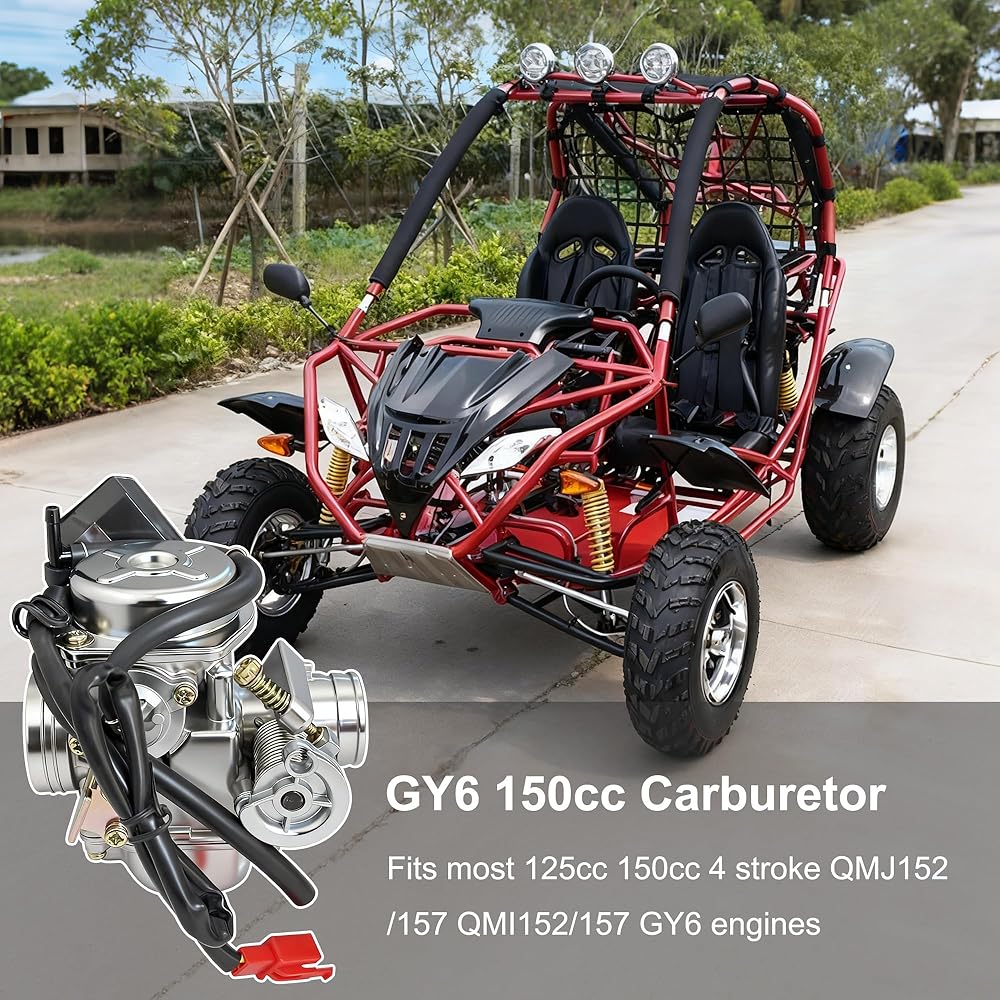 Compatible model:GY6 carburetor Compatible With 125cc to 150cc 4 stroke QMJ152/157 QMI152/157 GY6 engines,widely used on scooter ATV go kart moped UTV 4 wheeler Kazuma Baja Kymco Taotao SunL Tank.