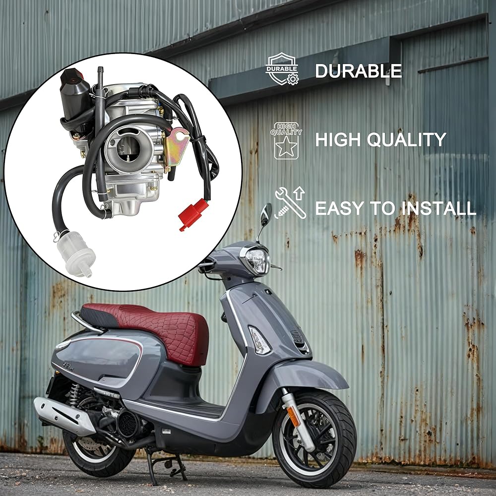 Excellent performance: The GY6 150cc 24mm carburetor can mix fuel and air in a certain proportion and achieve efficient combustion through atomization. Ensure stable engine operation by adjusting the mixing ratio. Keep your four stroke 125cc 152QMJ 157QMJ engine at higher power. Optimize combustion efficiency -150cc GY6 carburetor reduces intake air volume, making the mixture richer and easier to ignite. The idle port provides less fuel at low speeds and more fuel injection during acceleration to maintain stable engine operation