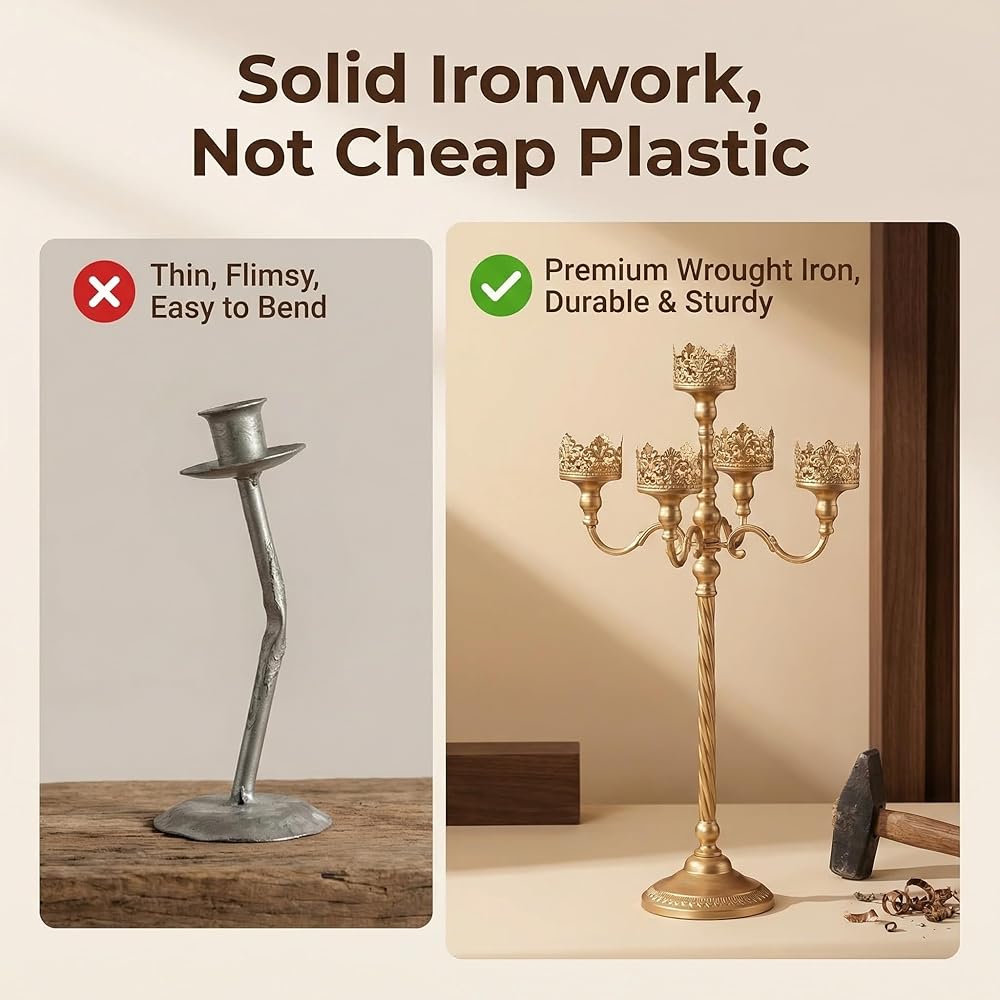 تصميم عتيق: إطار حديدي مصنوع يدويًا مع لمسة نهائية مؤكسدة غنية باللون الذهبي والأسود، مما يمنحه سحر العالم القديم. كل قطعة مهترئة بشكل فريد لديكور المنزل أو المناسبات الأنيقة