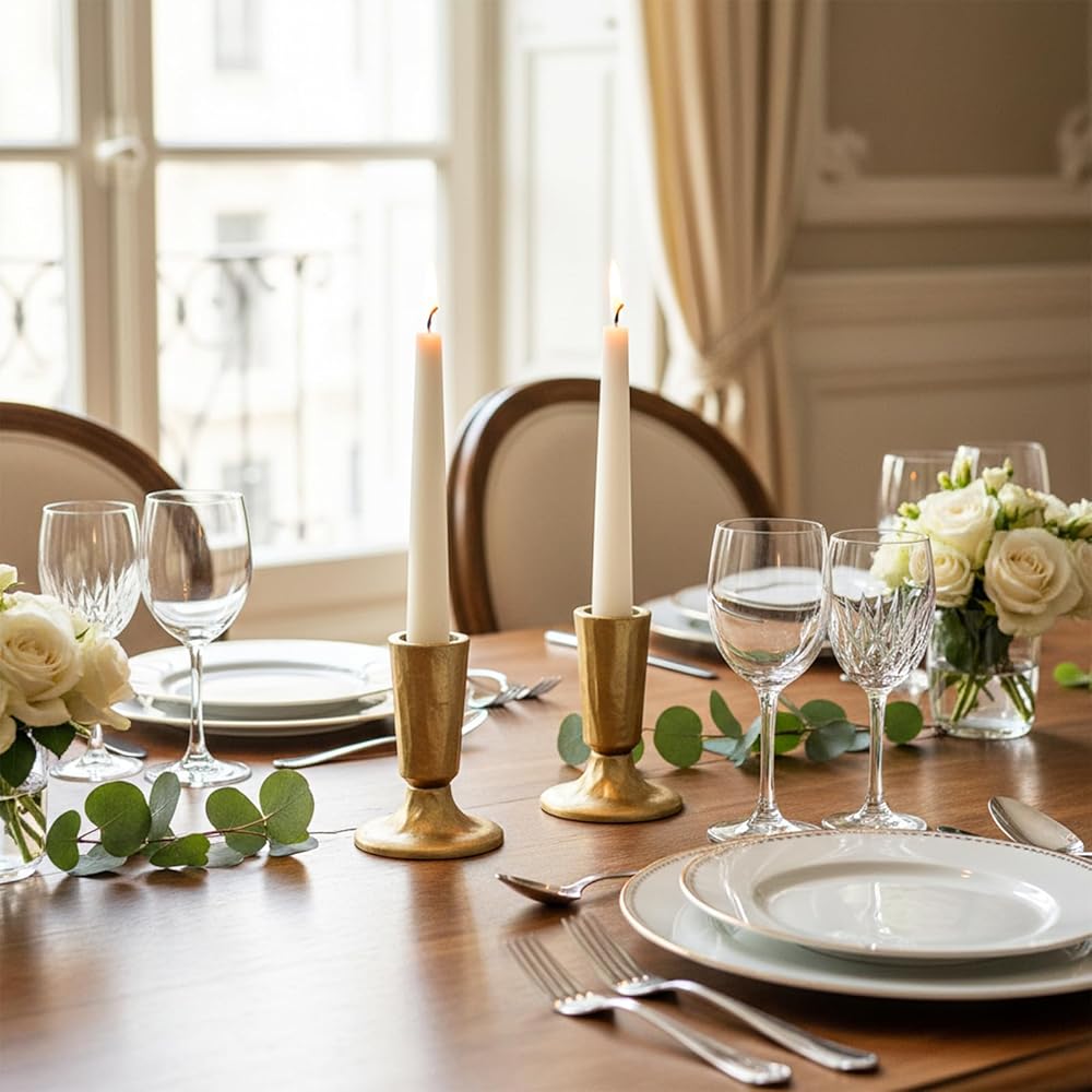Sturdy and well-balanced, they securely hold taper candles for weddings, parties, or everyday use.