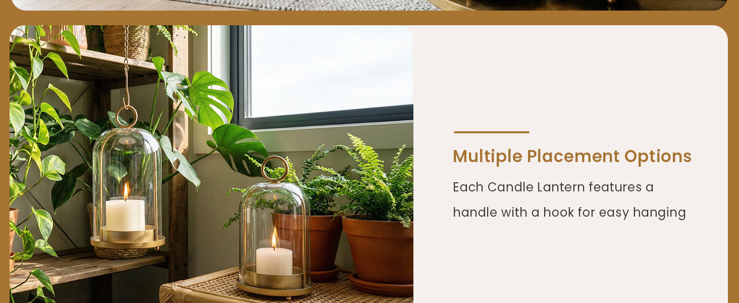 مجموعة من مقاسين - تتضمن 2 فانوس بأحجام مختلفة (5.25 بوصة × 10 بوصة و4.5 بوصة × 7.87 بوصة). يتيح لك هذا خلق اهتمام بصري جميل متعدد الطبقات في أي غرفة في منزلك.