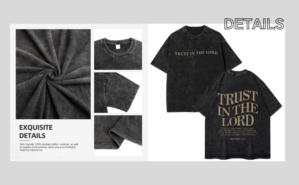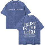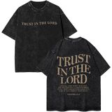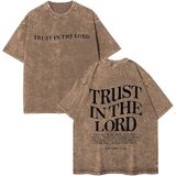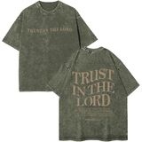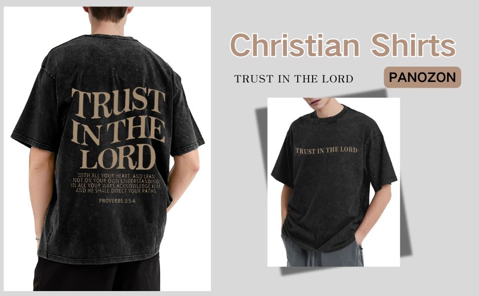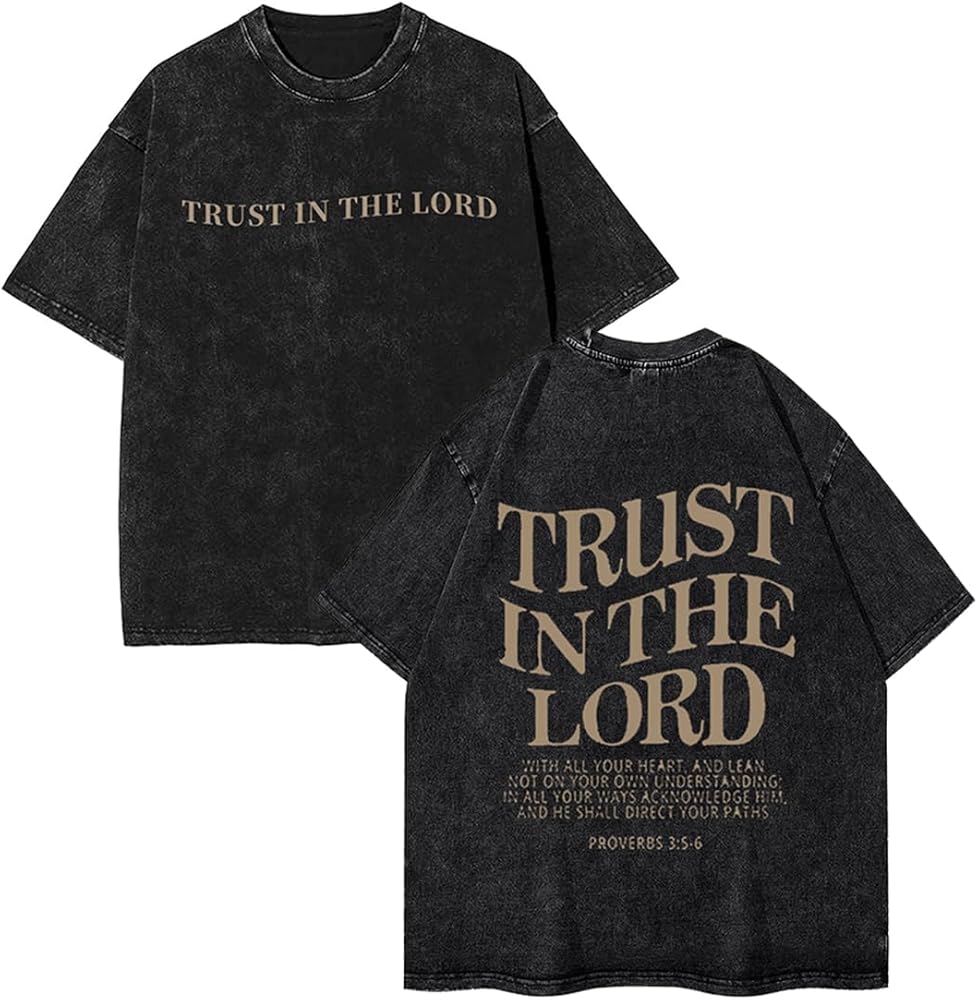 • تصميم الموضة: قمصان مسيحية للرجال، ثق في قميص لوردت، قميص الله، قميص مسيحي كبير الحجم بأكمام قصيرة، تي شيرتات رجالي عتيقة مغسولة بالحمض، مظهر عصري للغاية.
