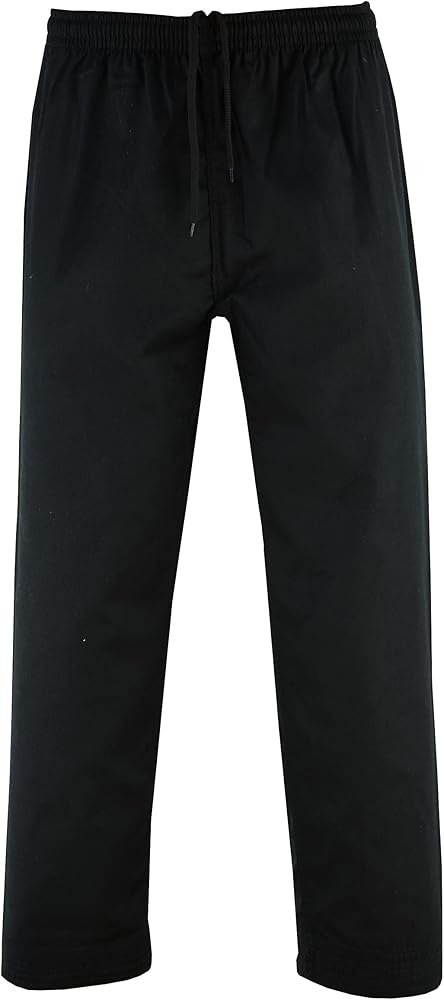 زي الكاراتيه خفيف الوزن مصنوع من القطن بنسبة 60% والبوليستر بنسبة 40%، وهو مزيج من القطن والبوليستر المتين بوزن 8 أونصة لتقليل الانكماش. تتميز سراويل الكاراتيه بحزام خصر مطاطي مع رباط لملاءمة قابلة للتعديل