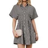 • المواد: هذا الفستان القصير المخطط ذو الأزرار للسيدات مصنوع من البوليستر بنسبة 100%، فستان القميص ذو الأزرار الصلبة مصنوع من القطن بنسبة 100%، خفيف الوزن ومسامي وصديق للبشرة، مما يجعله مريحًا في الارتداء.