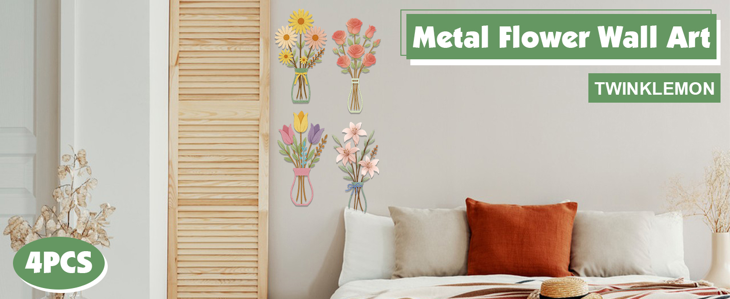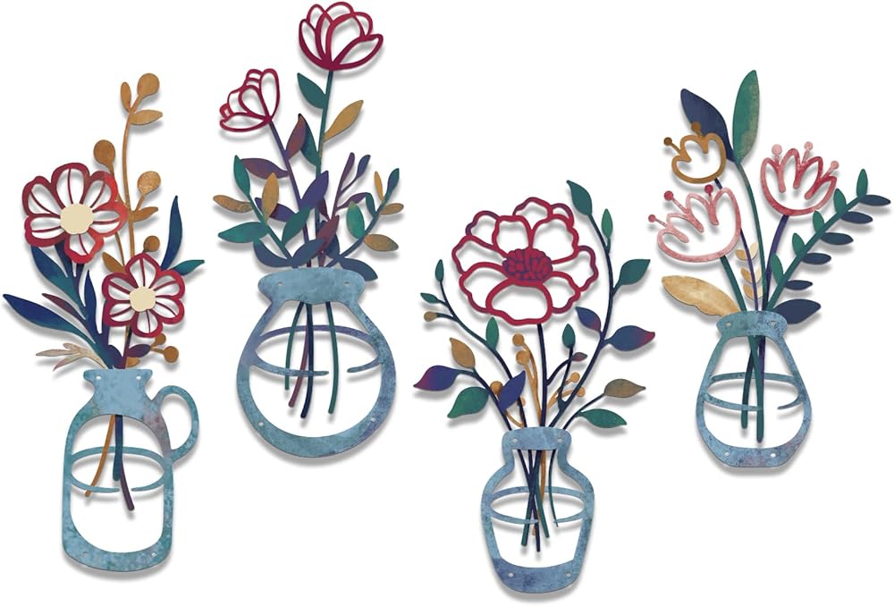 【4 قطع فنية جدارية على شكل مزهرية معدنية】سوف تحصل على 4 لافتات فنية جدارية معدنية على شكل زهور، وتتكون اللافتات من 4 مزهريات مليئة بالزهور متعددة الألوان، والخضراء، وتأتي مع أظافر. يمكن تعليقها على جدار أو باب حمامك، أو غرفة المعيشة، أو غرفة النوم، أو المطبخ، أو غرفة الطعام، أو المكتب، أو المدخل، مما يضيف جوًا ممتعًا ومريحًا إلى منزلك ومكتبك