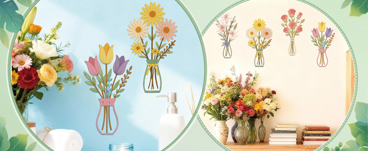 【مطابقة فريدة من نوعها للألوان】يتكون ديكور الحائط الزهري البسيط من مزهريات أنيقة وزهور جميلة وخضراء جميلة، مع ظلال ألوان مختلفة لخلق لوحة عتيقة وطبيعية من الزهور الجميلة، والأناقة العامة والتفرد منعش، ومناسب للديكور المنزلي العصري والعصري والبسيط.