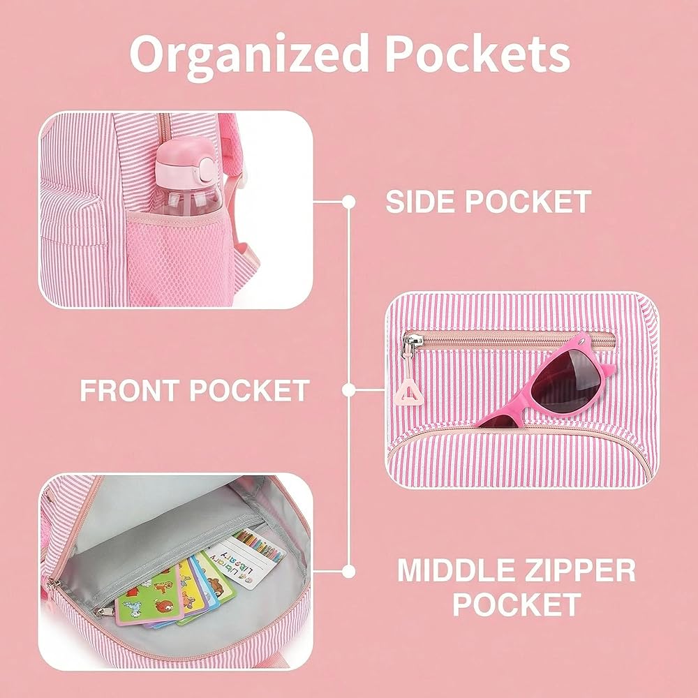 • 【حقيبة ظهر صغيرة للأطفال】حجم حقيبة الظهر اللطيفة للفتيات الصغيرات 12.5 بوصة × 9.6 بوصة × 4.1 بوصة، تأتي مع جيوب متعددة، بما في ذلك جيوب أمامية بسحاب للأنسجة أو الوجبات الخفيفة، وجيوب شبكية جانبية لزجاجة المياه وجيوب تخزين داخلية للحفاظ على الأشياء الصغيرة منظمة.