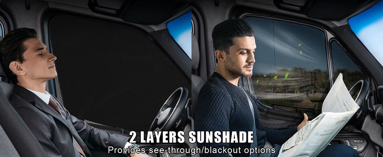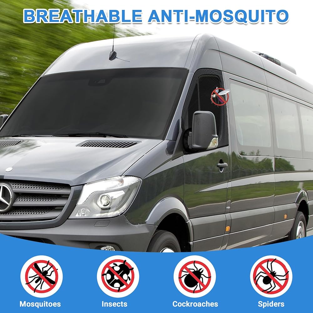 طبقات مزدوجة نافذة جانبية ظلة شاشة علة مغناطيسية للأبواب الأمامية، زوج شاشة علة النافذة وستارة ظلة متوافقة مع مرسيدس سبرينتر 2007-2025