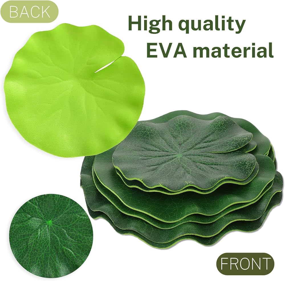 • DURABLE MATERIAL: Made from high-quality EVA plastic, these fake lily pads are designed to withstand the elements, ensuring long-lasting beauty and functionality in your pond.