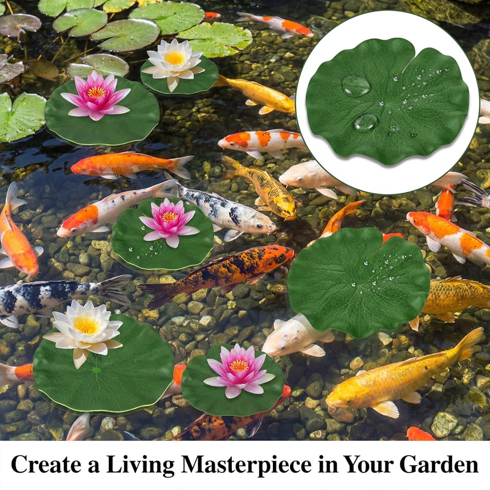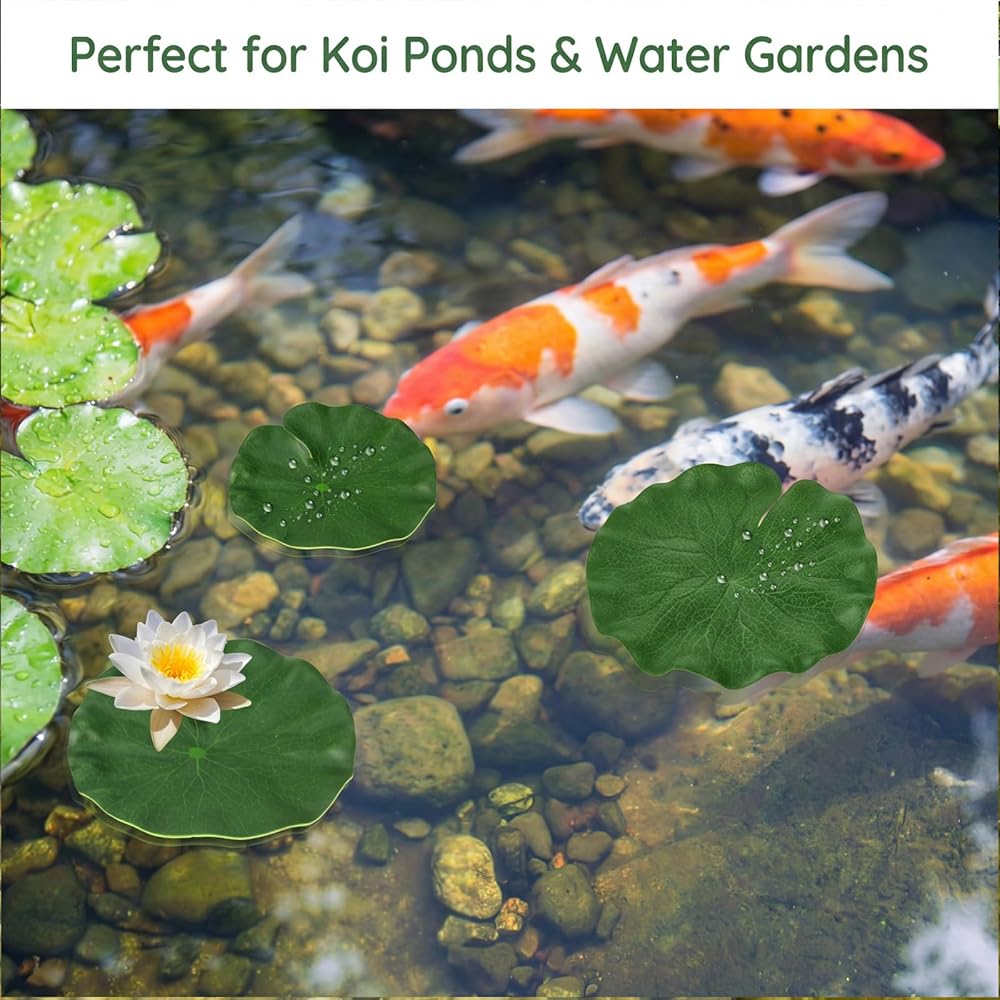 • VERSATILE APPLICATION: Perfect for ponds, pools, aquariums, and fountains, these artificial lily pads for ponds add a touch of elegance and tranquility to any water setting.