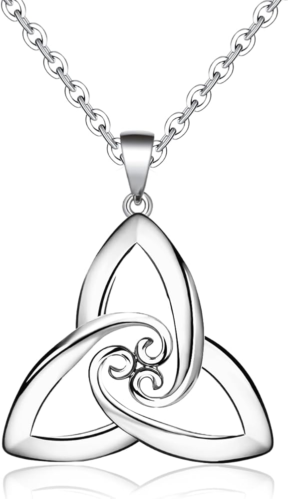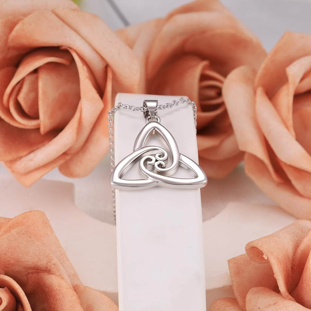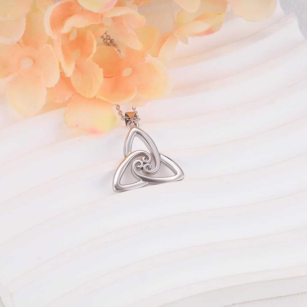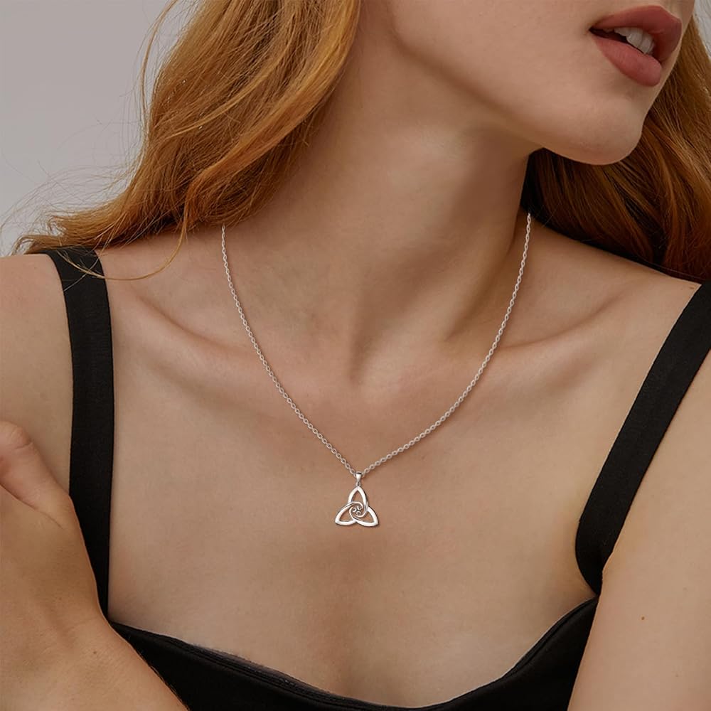 قلادة من الفضة الاسترليني سلتيك قلادة عصرية على شكل عقدة حب متقاطعة مثلثة مطلية بالذهب الأبيض لا تسبب الحساسية مجوهرات عتيقة مع سلسلة سحر هدايا عيد ميلاد للنساء