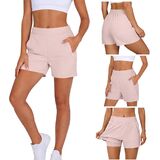 شورتات رياضية نسائية رياضية عصرية بلون سادة كاجوال بخصر مطاطي وسحاب وجيب، سراويل قصيرة للركض والعرق