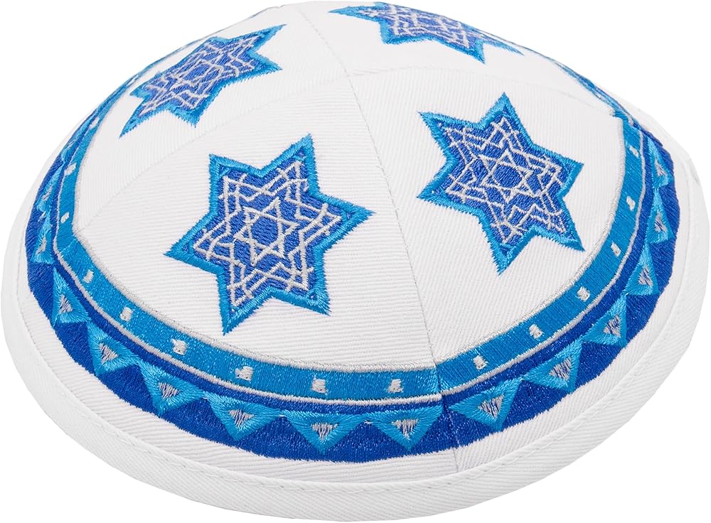 🔯 Exquisite Craftsmanship: Introducing the White/Black Cotton Kippah, meticulously crafted with an embroidered Blue Star of David. Each kippah is a testament to superb craftsmanship, featuring an inner lining for enhanced durability.