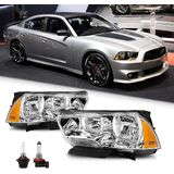 XuChenKJ Halogen Headlight Assembly With Bulb fit for 2011 2012 2013 2014 Dodge Charger R/T SE SRT8 SXT Plus Persuit Sedan